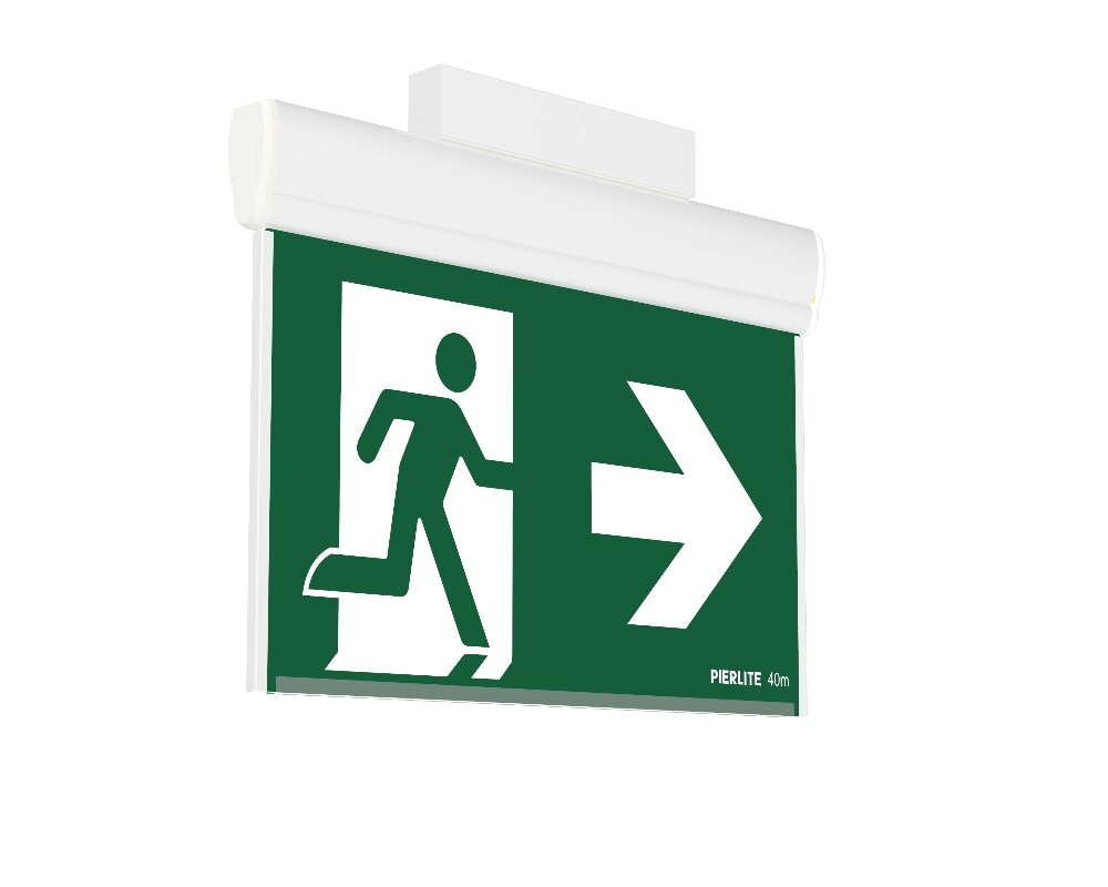 The stylish, energy efficient 32m and 40m LED exit luminaire is designed for large open spaces. Products and accessories, including DALI 2 compliant, Interact Ready options