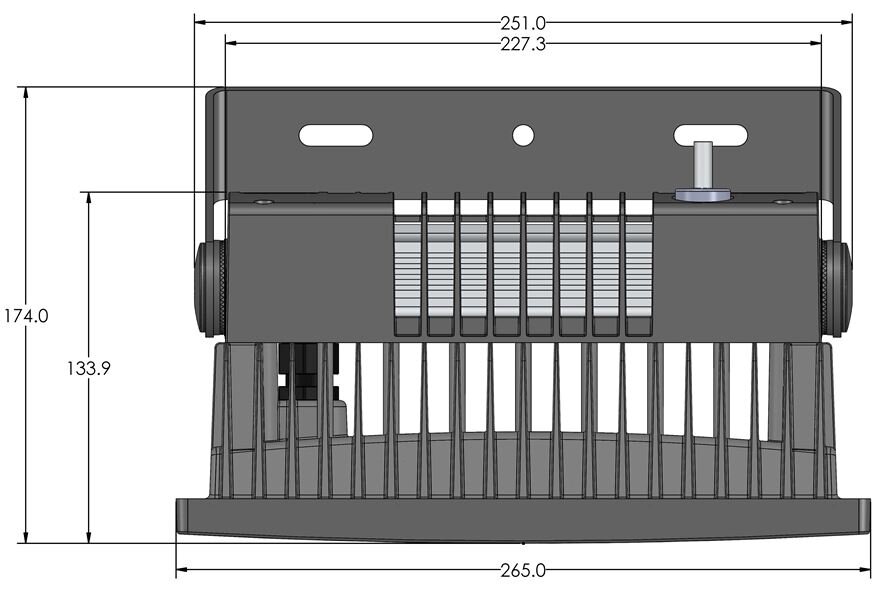 Pierlite 9100lm IP66 LED, tempered glass floodlight, adjustable 285° bracket and integral electronic gear. Ideal for commercial and residential yards, entrance areas, building surroundings, BBQ and entertaining spaces and security areas.